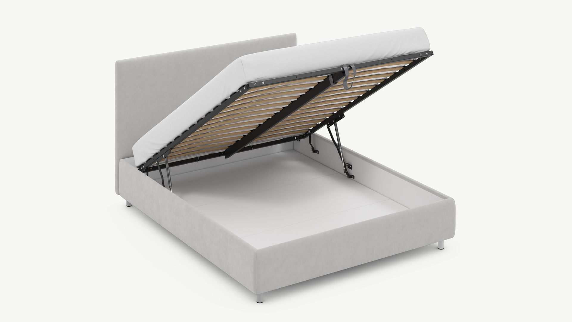 - Скрытая под основанием вместительная емкость без внутренних перегородок позволяет использовать всю площадь подкроватного пространства для хранения вещей.