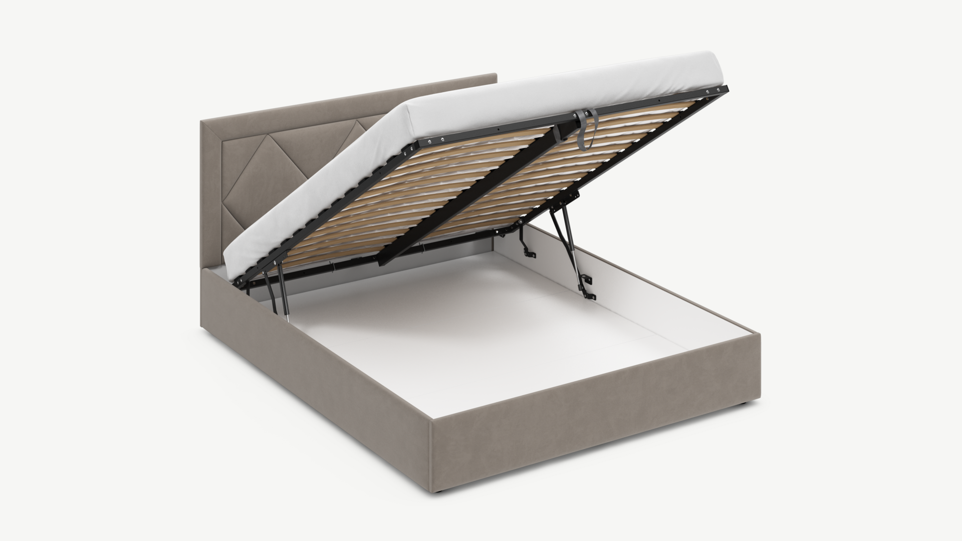 • Скрытая под основанием вместительная емкость без внутренних перегородок позволяет использовать всю площадь подкроватного пространства для хранения вещей.