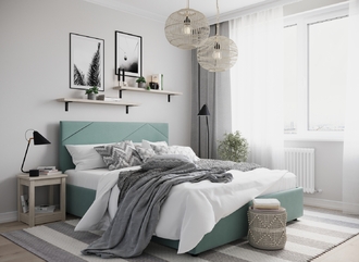 MOON FAMILY 1257 привлекает внимание оригинальным исполнением: широкие полосы ткани эффектно пересекают периметр изголовья, создавая на нем графический орнамент. Лаконичные формы объемных царг создают единый гармоничный образ и фокусируют внимание на центральном текстурном элементе кровати.