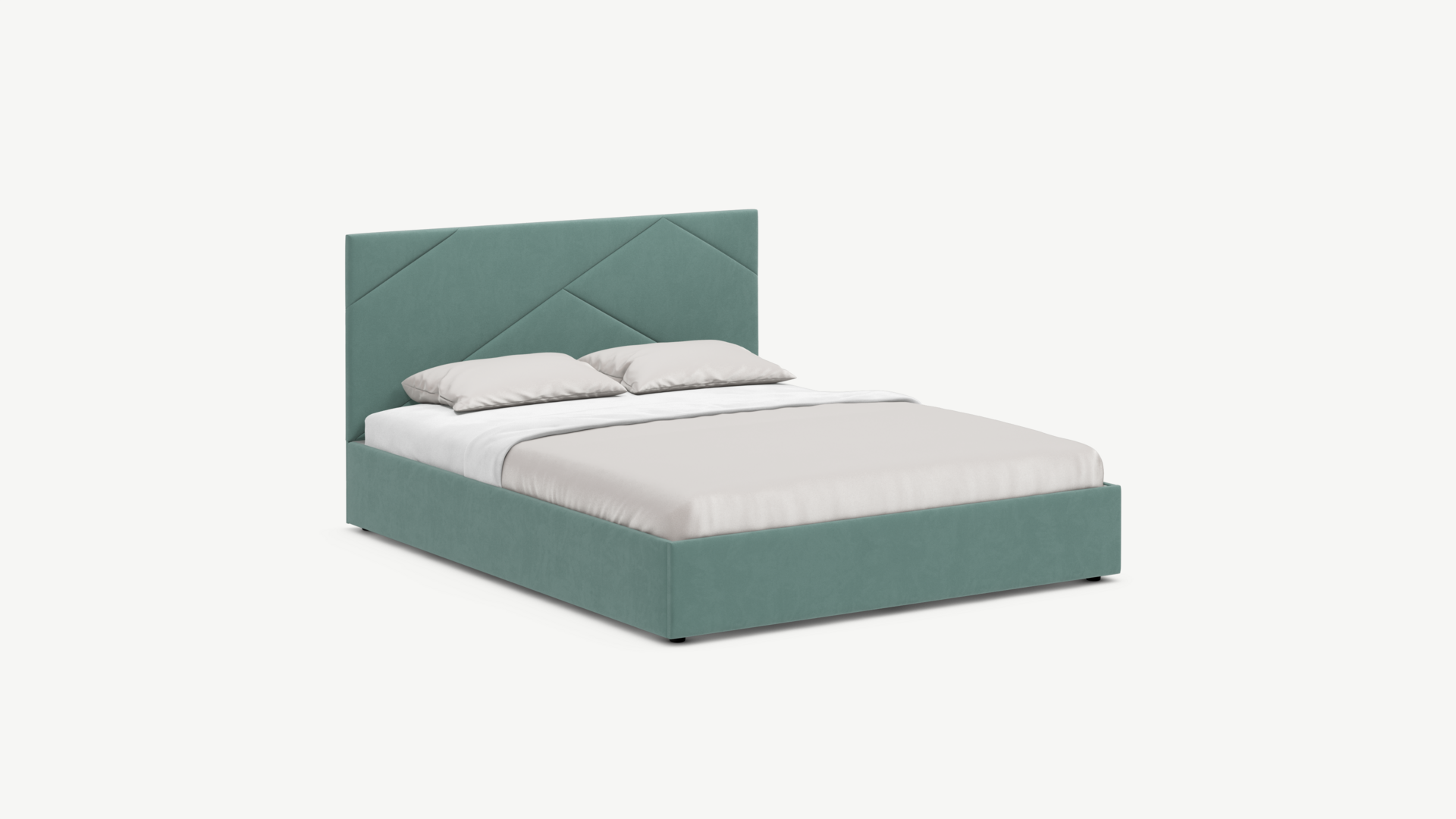 MOON FAMILY 1257 привлекает внимание оригинальным исполнением: широкие полосы ткани эффектно пересекают периметр изголовья, создавая на нем графический орнамент. Лаконичные формы объемных царг создают единый гармоничный образ и фокусируют внимание на центральном текстурном элементе кровати.