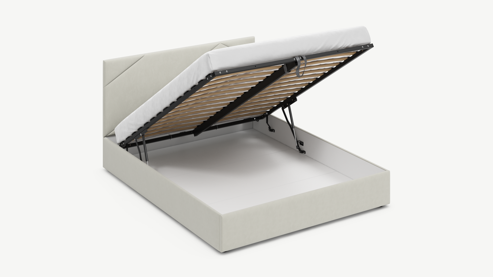 • Скрытая под основанием вместительная емкость без внутренних перегородок позволяет использовать всю площадь подкроватного пространства для хранения вещей.