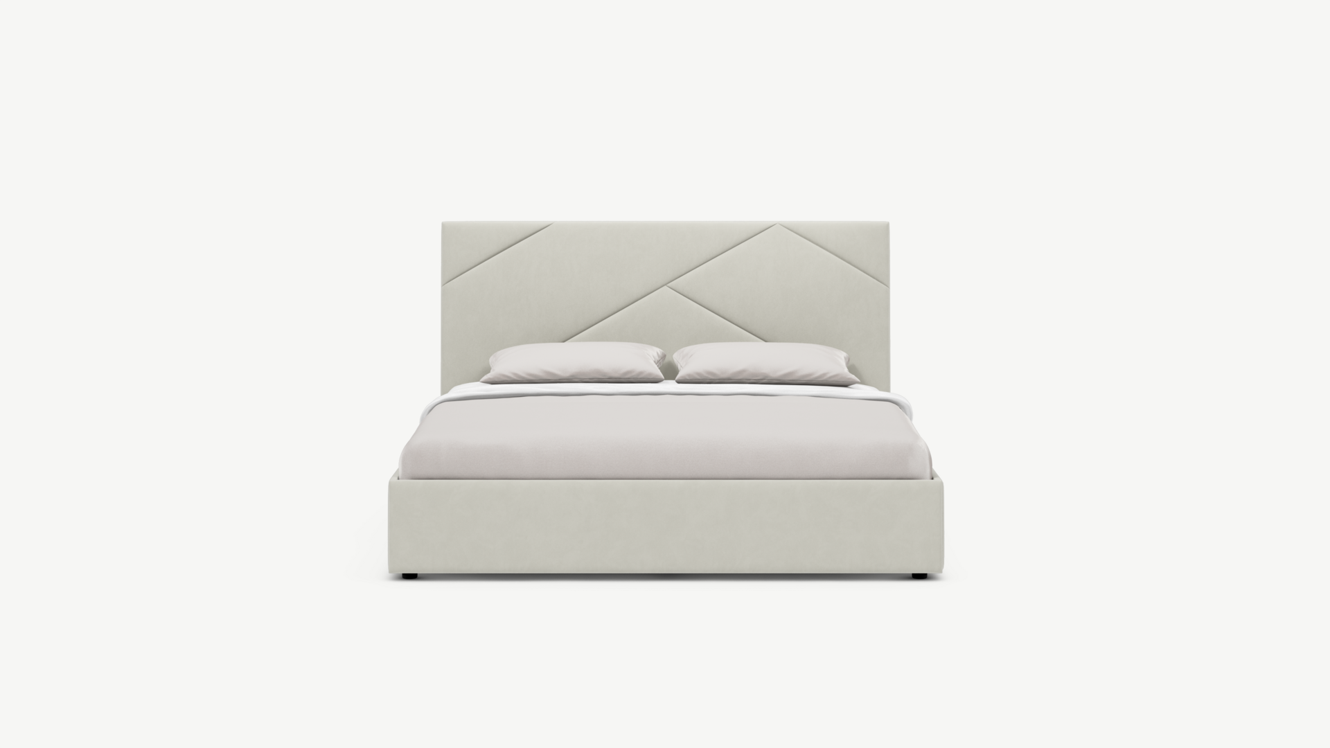 MOON FAMILY 1257 привлекает внимание оригинальным исполнением: широкие полосы ткани эффектно пересекают периметр изголовья, создавая на нем графический орнамент. Лаконичные формы объемных царг создают единый гармоничный образ и фокусируют внимание на центральном текстурном элементе кровати.
