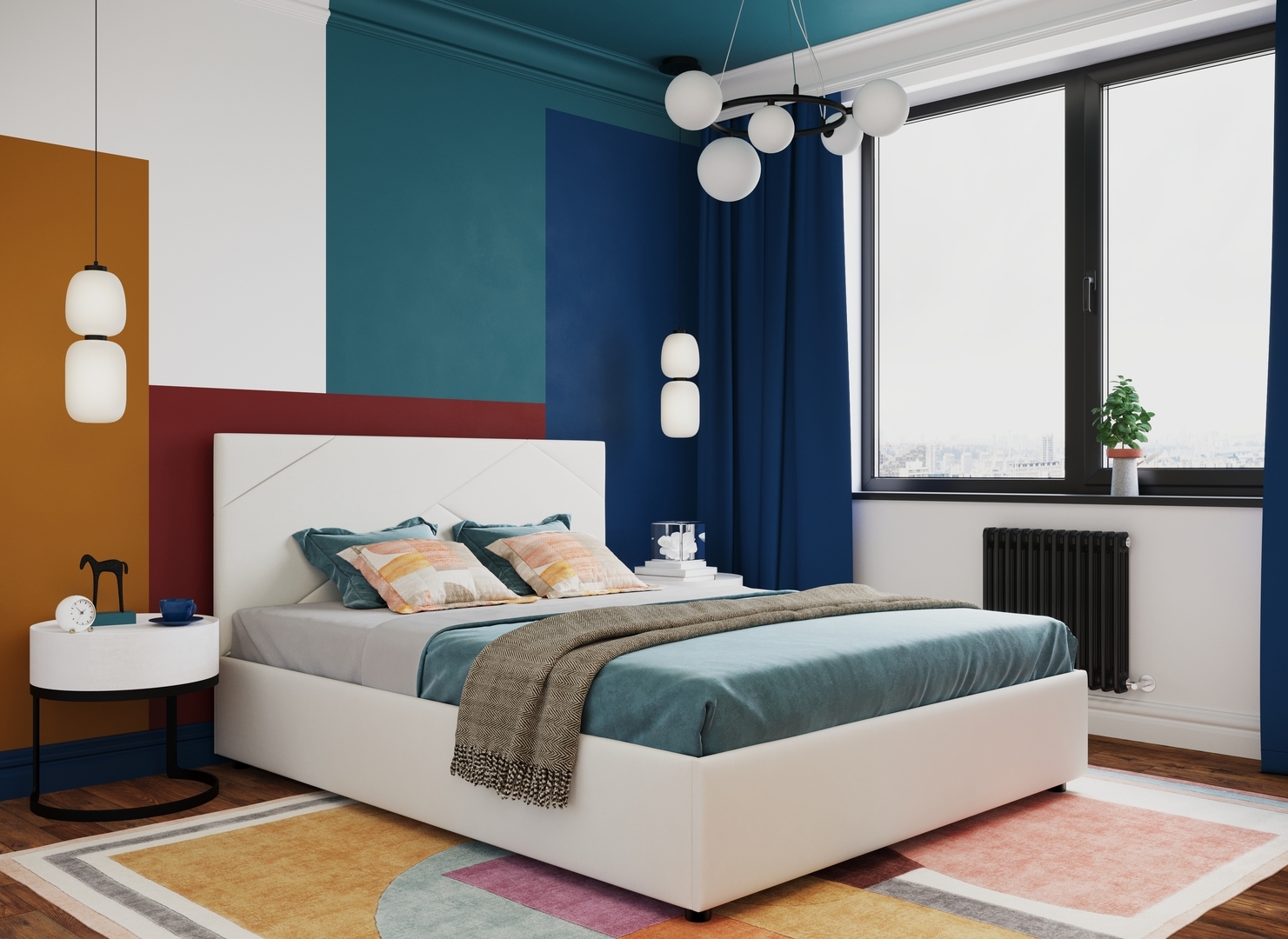 Создать гармоничный интерьер и завершить образ спальни помогут дополнительные аксессуары, например: тумбы, банкетки, подушки.