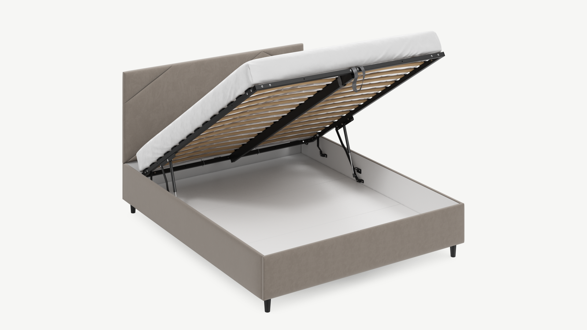 • Скрытая под основанием вместительная емкость без внутренних перегородок позволяет использовать всю площадь подкроватного пространства для хранения вещей.