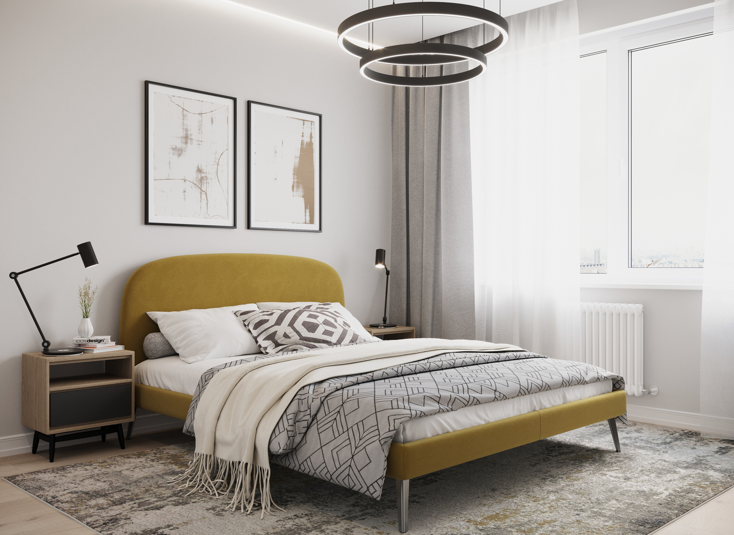 Создать гармоничный интерьер и завершить образ спальни помогут дополнительные аксессуары, например: тумбы, банкетки, подушки.