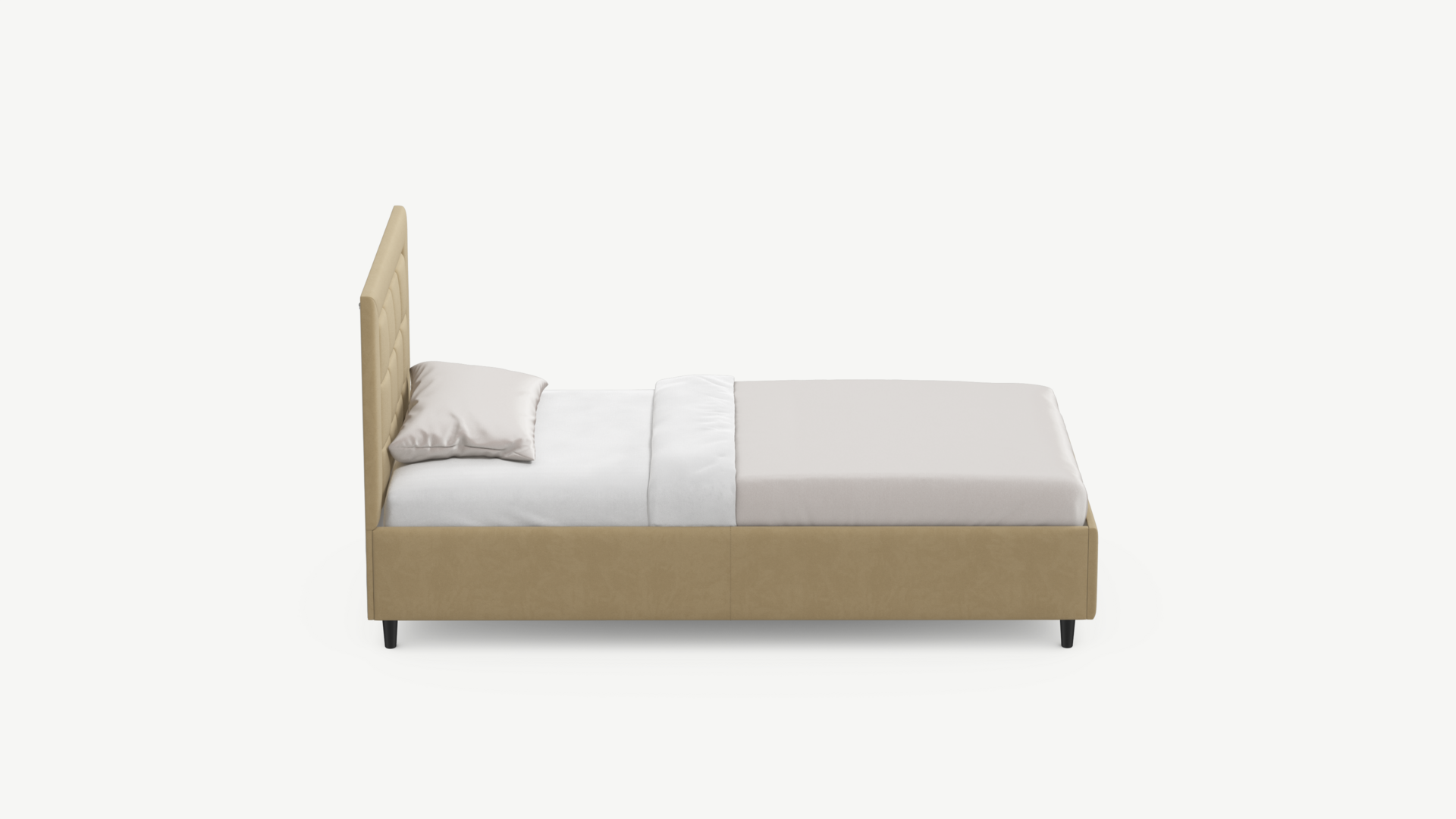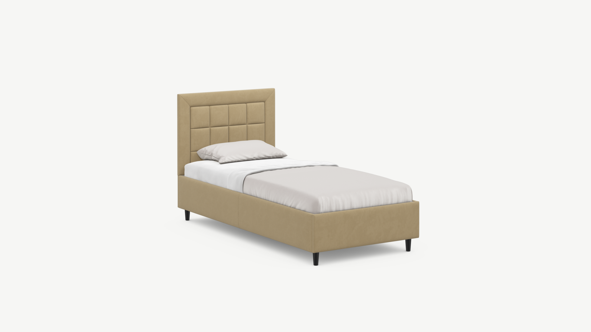 Изголовье декорировано рельефным рисунком стежки в крупный квадрат, получившим особую фактуру за счет глубины шва.