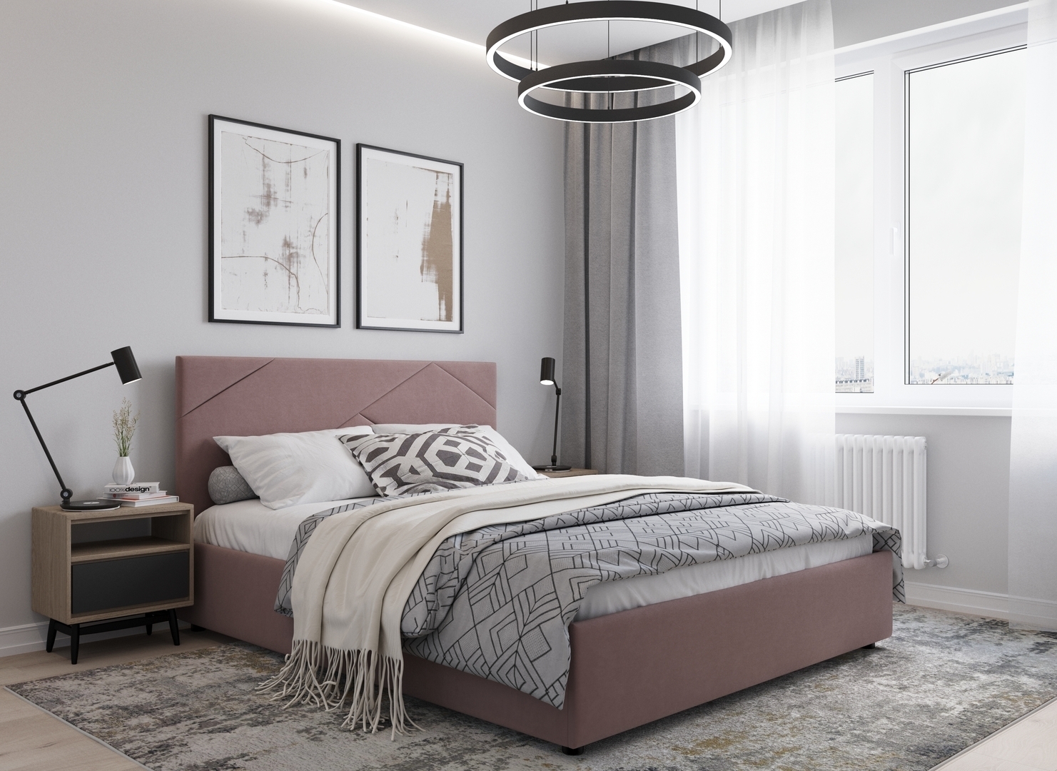 MOON FAMILY 1257 привлекает внимание оригинальным исполнением: широкие полосы ткани эффектно пересекают периметр изголовья, создавая на нем графический орнамент. Лаконичные формы объемных царг создают единый гармоничный образ и фокусируют внимание на центральном текстурном элементе кровати.