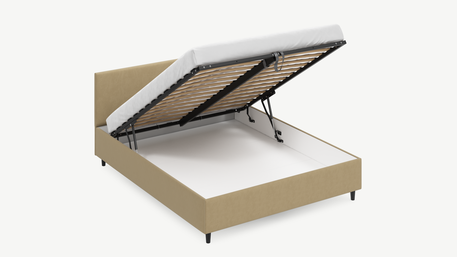 • Скрытая под основанием вместительная емкость без внутренних перегородок позволяет использовать всю площадь подкроватного пространства для хранения вещей.
