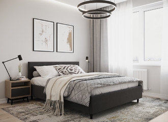 Создать гармоничный интерьер и завершить образ спальни помогут дополнительные аксессуары, например: тумбы, банкетки, подушки.