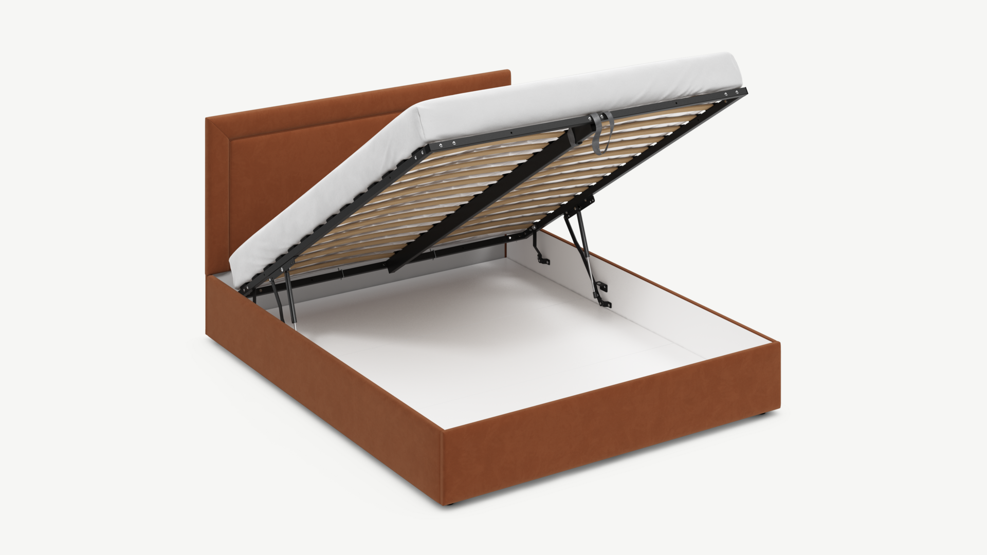• Скрытая под основанием вместительная емкость без внутренних перегородок позволяет использовать всю площадь подкроватного пространства для хранения вещей.