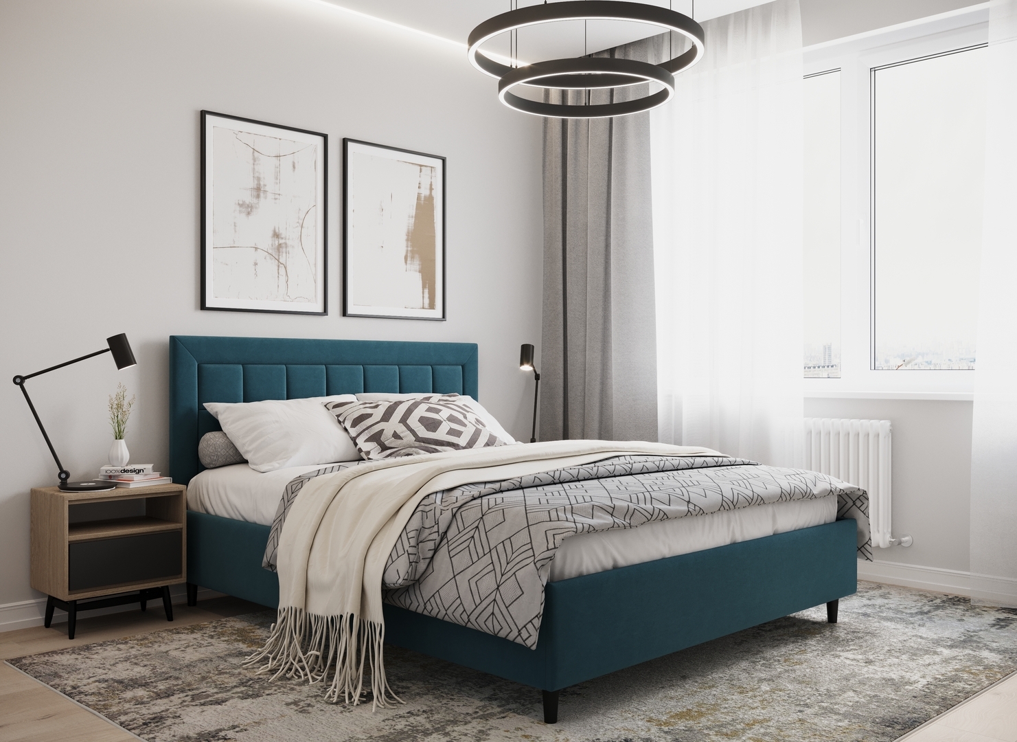 Создать гармоничный интерьер и завершить образ спальни помогут дополнительные аксессуары, например: тумбы, банкетки, подушки.