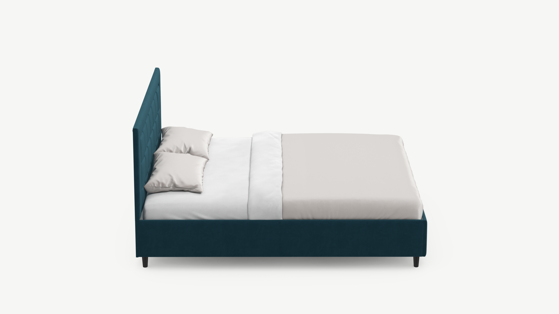 Изголовье декорировано рельефным рисунком стежки в крупный квадрат, получившим особую фактуру за счет глубины шва.