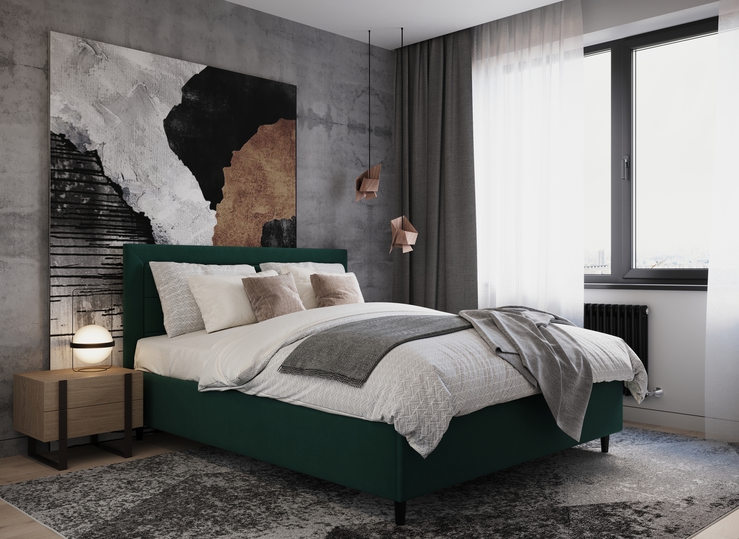 Стежка помещена в центр изголовья и обрамлена, словно картина. Объемные царги завершают цельную фигуру кровати и становятся гармоничным дополнением ее образа.