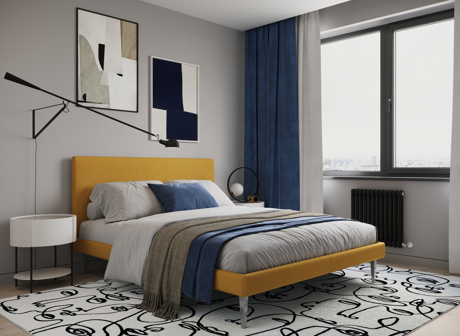 Создать гармоничный интерьер и завершить образ спальни помогут дополнительные аксессуары, например: тумбы, банкетки, подушки.