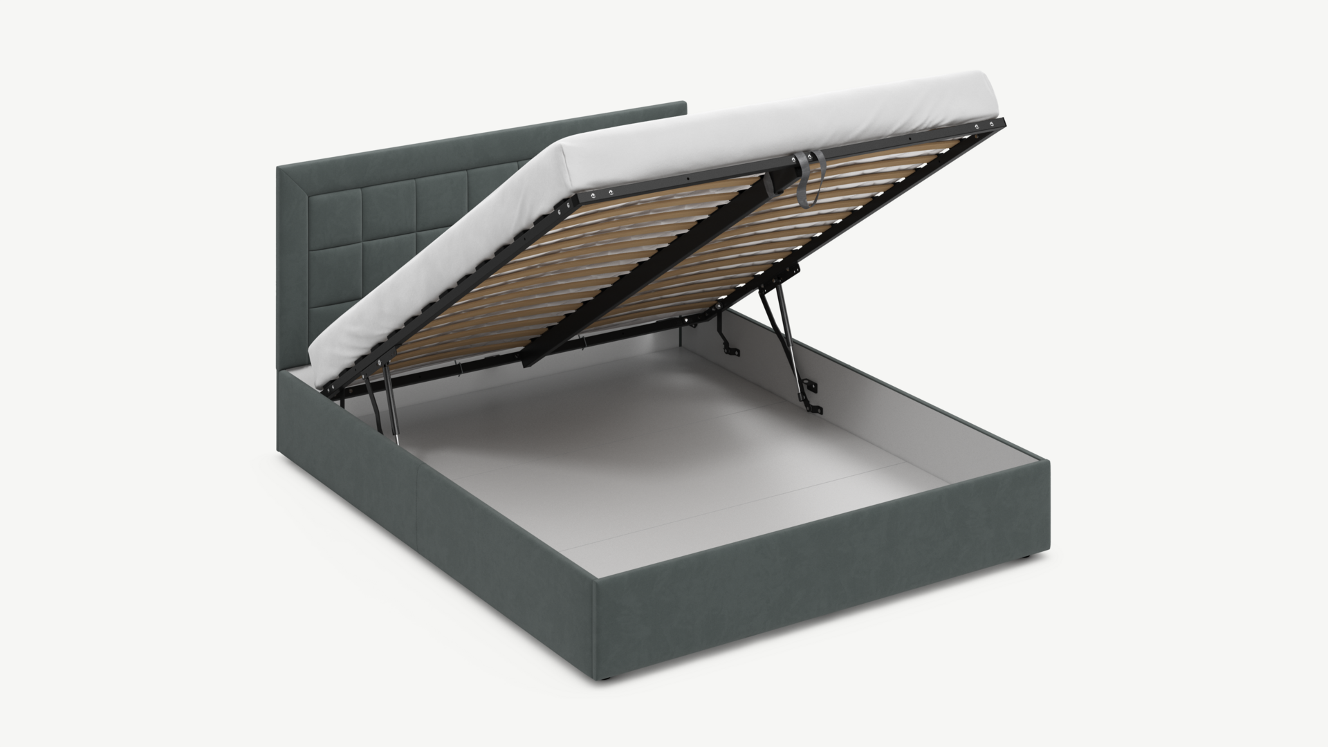 - Скрытая под основанием вместительная емкость без внутренних перегородок позволяет использовать всю площадь подкроватного пространства для хранения вещей.