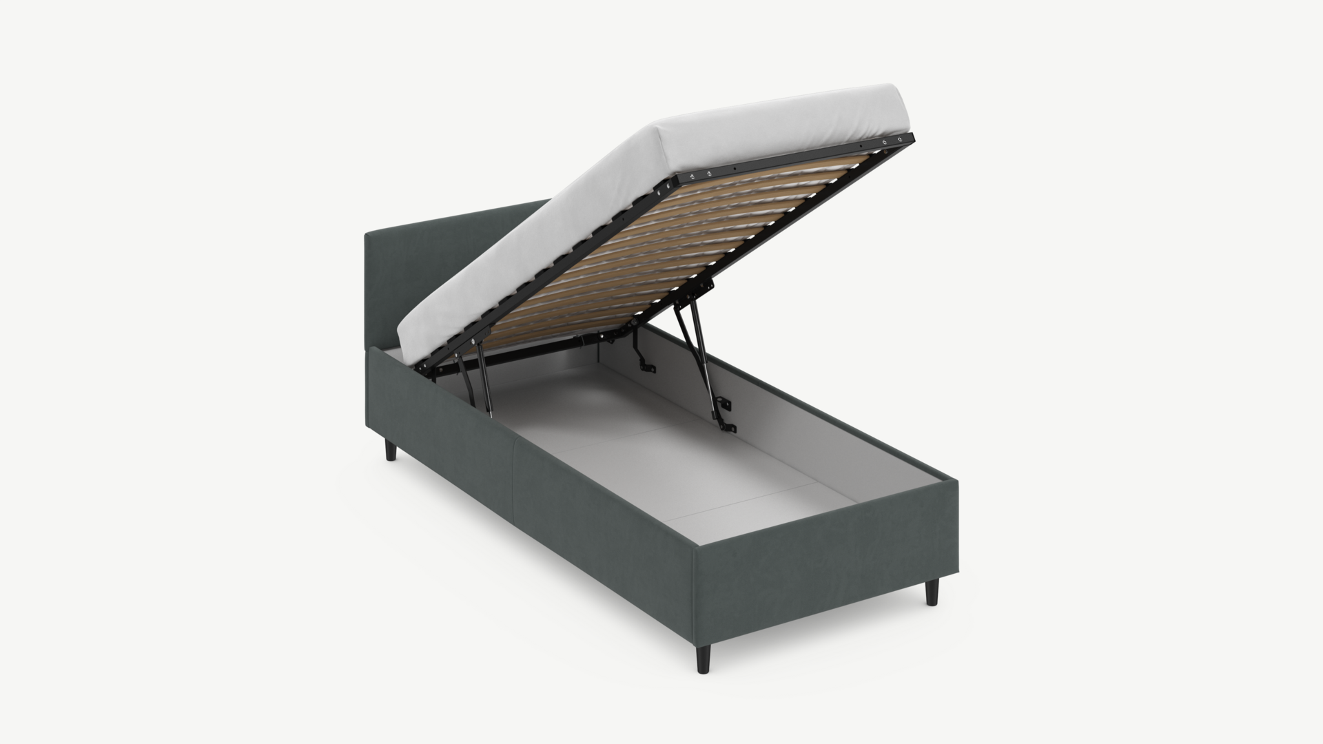 Регулируемый подъемный механизм с газовыми амортизаторами позволяет плавно и бесшумно поднимать и опускать спальное место.