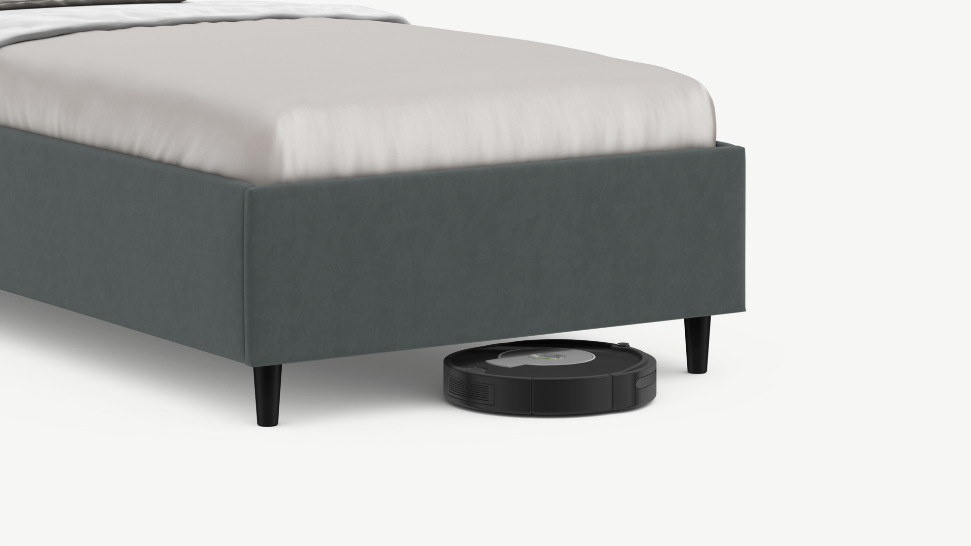 Благодаря высоким опорам под кроватью проходит робот-пылесос и легко проводится влажная уборка, что обеспечивает чистоту и порядок в доме.