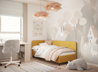 В подростковой комнате эта кровать станет стильным акцентом окружающего интерьера и возьмет на себя роль удобной кушетки для друзей, зашедших в гости.