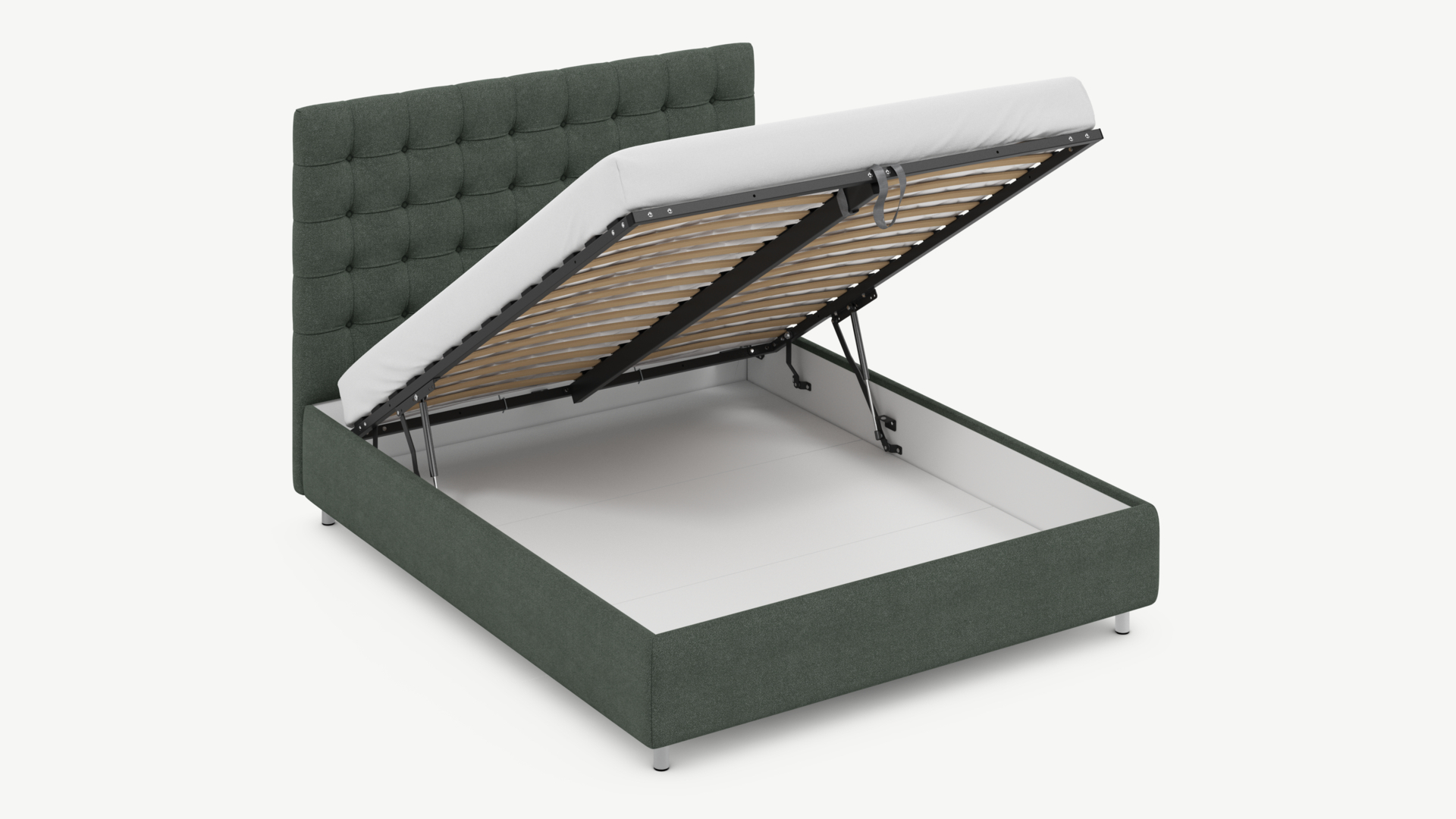 - Скрытая под основанием вместительная емкость без внутренних перегородок позволяет использовать всю площадь подкроватного пространства для хранения вещей.