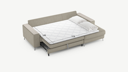 Секция «канапе» обеспечивает дополнительное пространство для отдыха, благодаря которому Вы можете располагаться с максимальным комфортом, удобно вытянув ноги. Под данной секцией расположен вместительный бельевой короб.