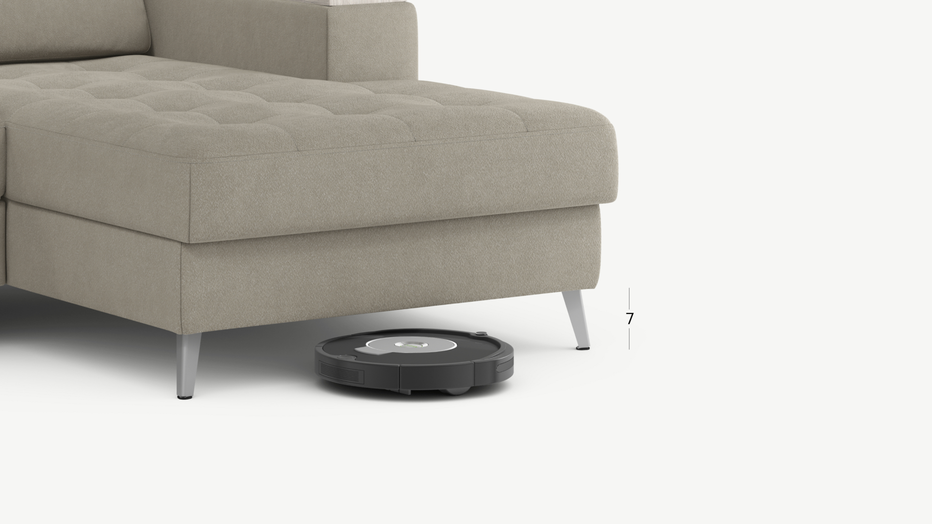 Благодаря высоким наклонным опорам под диваном проходит робот-пылесос и легко проводится влажная уборка, что обеспечивает чистоту и порядок в доме.