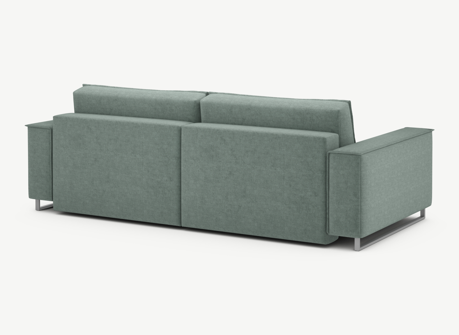 Красивый вид дивана со всех сторон. Спинка дивана, полностью облицованная обивочным материалом, придает изделию эстетичный внешний вид, завершает его образ и позволяет ставить диван в центре комнаты и/или зонировать пространство.