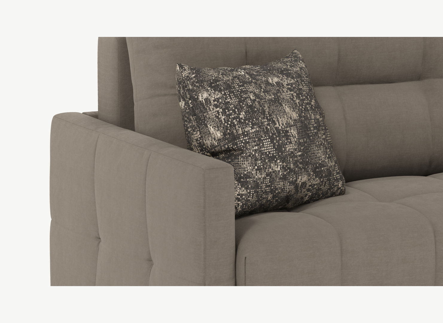 Диван MOON 015 может претендовать на звание «Самый-самый». Поводов несколько: подлокотники без декора, добавляющие образу нотки уюта, стежка в квадрат, охватывающая большинство ключевых элементов, а также удачное сочетание прямых линий корпуса с плавными формами посадочного места.