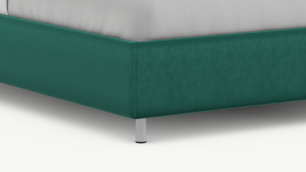 Оформите образ кровати, выбирая обивочный материал, который подчеркнет звучание Вашей спальни и отразит Ваш вкус. Обратите внимание на однотонный гладкий велюр, который усиливает объемную фактуру стежки.