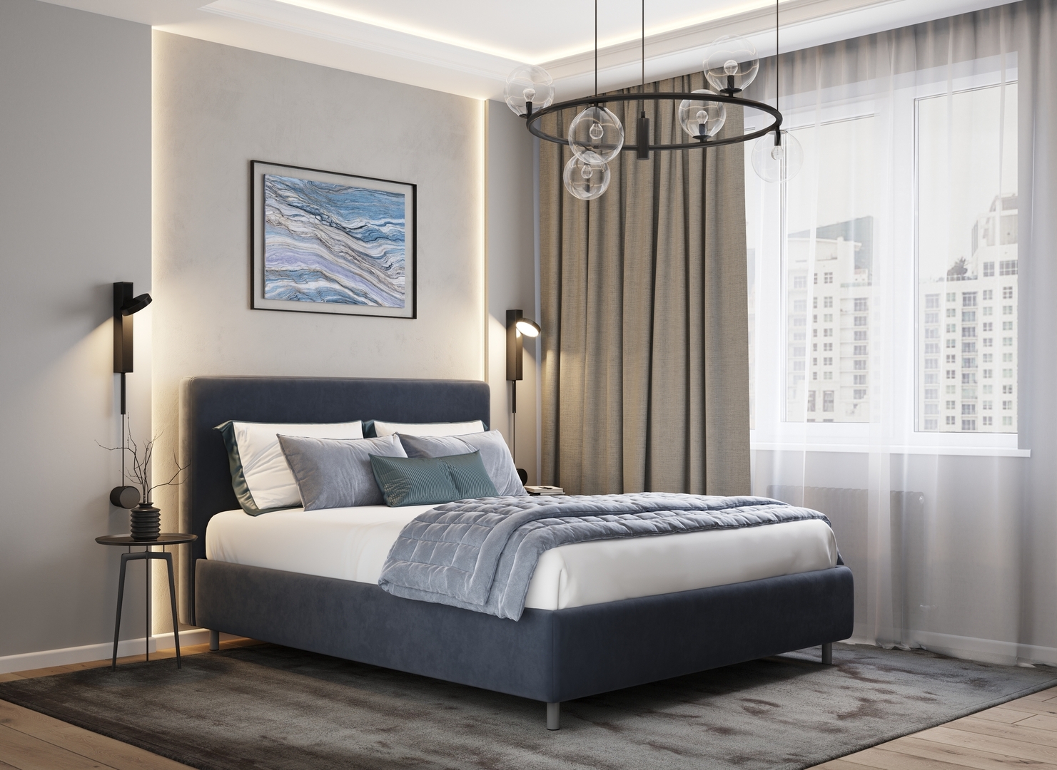 Творческий подход к выбору обивочного материала меняет образ дизайна. Велюр за счет своей бархатистой фактуры привносит в пространство шика и утонченности. Шенилл дополняет оформление спальни природными текстурами, создавая атмосферу тепла и уюта.