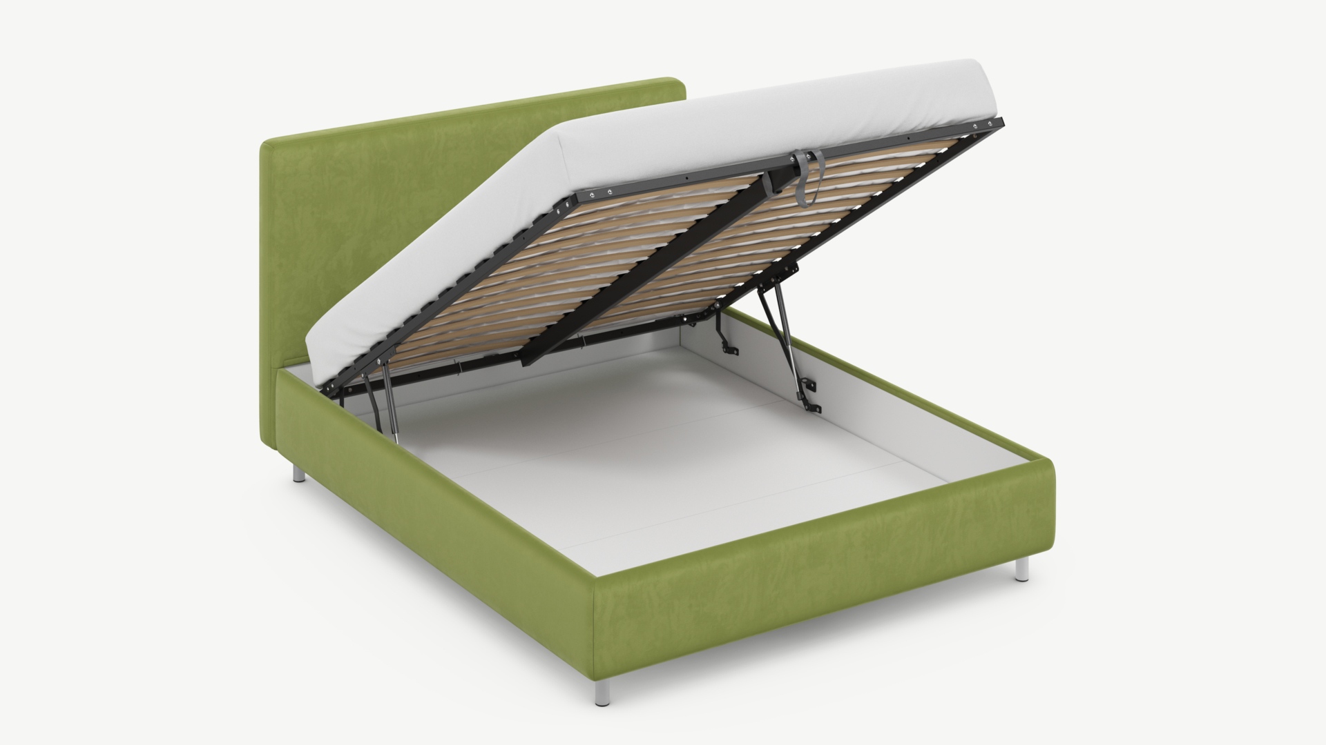 • Скрытая под основанием вместительная емкость без внутренних перегородок позволяет использовать всю площадь подкроватного пространства для хранения вещей.