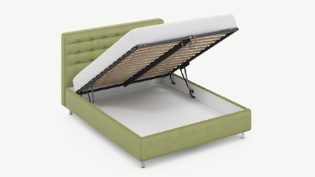 • Скрытая под основанием вместительная емкость без внутренних перегородок позволяет использовать всю площадь подкроватного пространства для хранения вещей.
