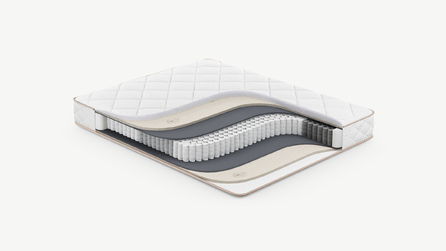 Повышает жесткость и плотность спального места, а также обеспечивает оптимальный воздухообмен благодаря объемной структуре материала. Улучшает эксплуатационные показатели матраса, не давая пружинному блоку механически воздействовать на комфортные слои.