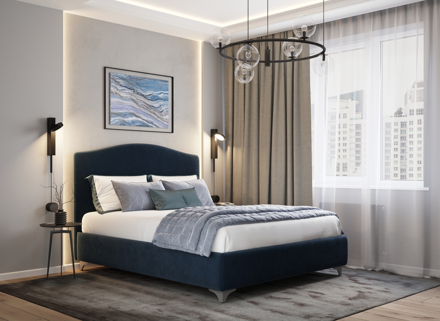 Разнообразие цветовой палитры позволит подобрать желаемый оттенок обивочного материала. Использование светлых цветов поддержит настроение стиля «Сканди». Нейтральные оттенки в цвет интерьера обыграют спальню в Современном стиле.