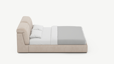 Изголовье подчеркивает эстетику MOON 1107, а также дарит дополнительный комфорт и уют спальному месту. Обратная сторона изголовья выполнена в мебельной ткани и позволяет ставить кровать в центре комнаты для зонирования пространства.