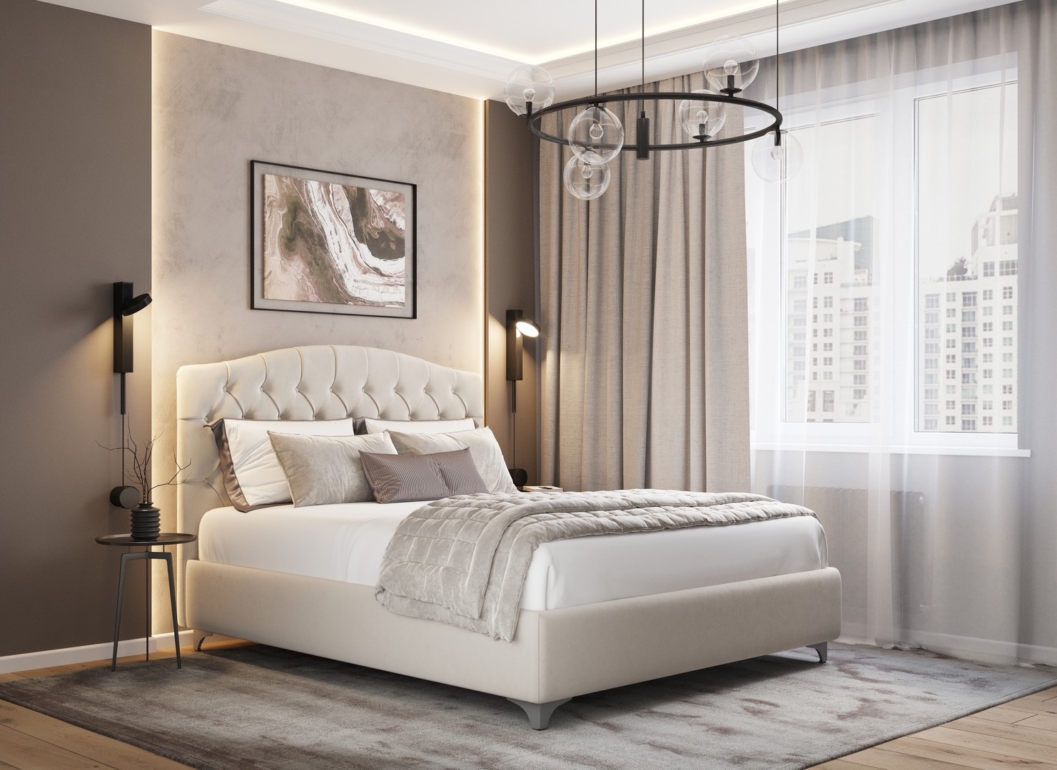 Разнообразие цветовой палитры позволит подобрать желаемый оттенок обивочной ткани. Использование светлых цветов поддержит настроение стиля «Сканди». Приглушенные насыщенные оттенки оформят кровать в стиле «Лофт». Нейтральные оттенки в цвет интерьера обыграют спальню в Современном стиле.