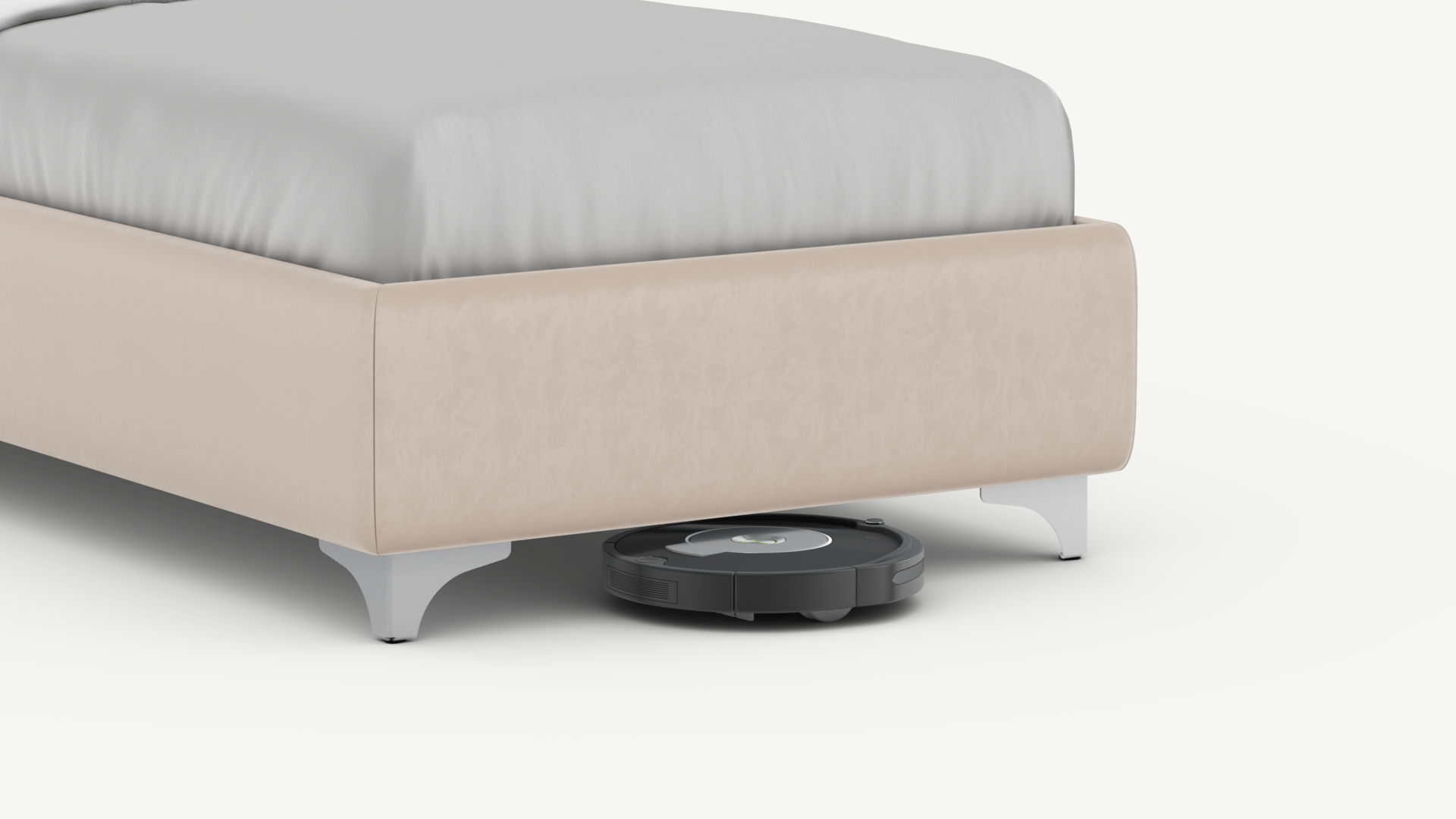 Металлические опоры создают над полом достаточный просвет для движения робота-пылесоса, что помогает поддерживать чистоту и порядок в доме.